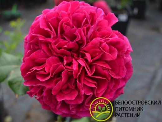 Бутоны роз крупные (10 см в диаметре) и махровые, цвет от спелого граната до насыщенного малинового.