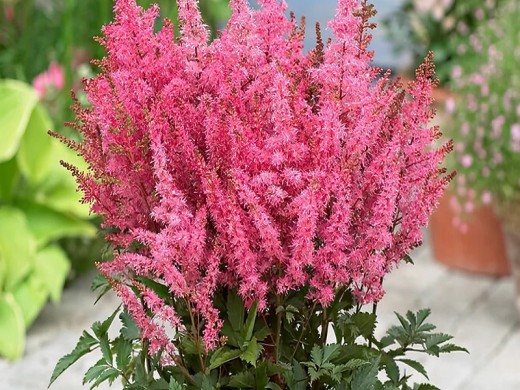 Астильба гибридная "Younique Pink" один из низкорослых сортов. Порадует садоводов обильноцветущими пышными, соцветиями ярко розового цвета. Растение прекрасно смотрится среди хвойных растений, групповых и одиночных посадках в полутенистых цветниках, у водоемов.