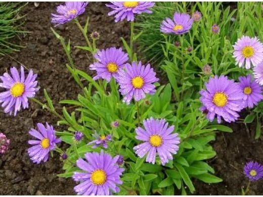 Астра альпийская "Dunkle Schone" Один из ранних сортов. Неприхотливый, цветущий многолетник. Используется для оформления бордюров, альпийских горок, миксбордеров.