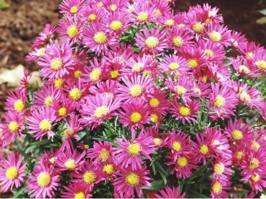 Астра кустарниковая "Bahamas" пышно цветущий шаровидный кустик. Сорт прекрасно смотрится в бордюрах, на клумбах, миксбордерах, подходит для выращивания в контейнере.