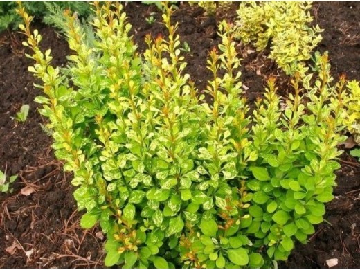 Куст высотой до 120 и шириной до 80 см. Побеги длинные, ровные, с коричневой корой. Листья длиной до 2 см, обратно-яйцевидной, эллиптической или овальной формы. Окраска листа весной желто-зеленая, летом – зеленая с белыми мраморными пятнами, осенью – оранжево-красная. У основания короткие шипы.