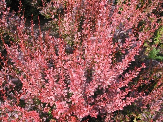 Rosy Rocket' - колючий кустарник с колонновидной кроной и розово-красной листвой, используется как вертикальный акцент, в смешанных композициях, живых изгородях.