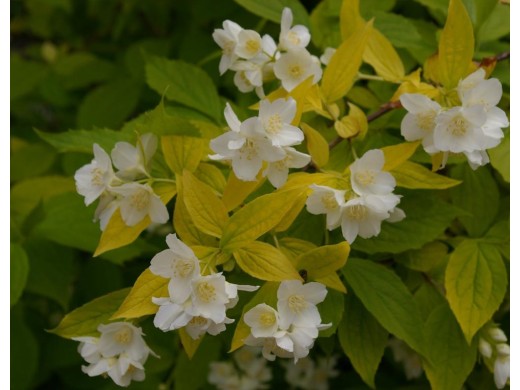 Чубушник венечный "Aureus" (Philadelphus coronarius Aureus) - декоративный раскидистый кустарник с золотисто-зеленой листвой и ароматными цветами, привлекательно выглядит с весны до осени. Для контраста его высаживают рядом с краснолистными растениями или хвойниками с голубой хвоей.