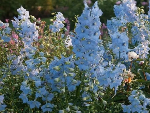 Дельфиниум гибридный "Balkleid" — это нежное очарование вашего сада! Его стройные цветоносы с изящными светло-голубыми цветками создают эффект воздушности и легкости, словно платье балерины, что и отражено в названии сорта ("Balkleid" — "бальное платье" на немецком). Этот сорт идеально подходит для миксбордеров, групповых посадок и срезки, добавляя саду утонченности и романтики.