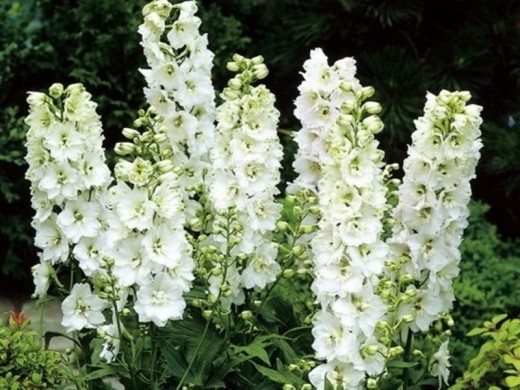 Распустившиеся соцветия очень нежные по цветовой гамме – белые со светло-зелеными пятнышками у острия лепестка, бутоны такого же светло-зеленого цвета. Цветение наступает в первый летний месяц. Растение не прихотливо в уходе, не нуждается в дополнительном укрытии на холодный период года. Высота растения 90-120 см. Цветки полумахровые диаметром 5-6 см. Цветоносы прочные, собраны в длинные, конусовидные соцветия (до 50 см).Характеристики: