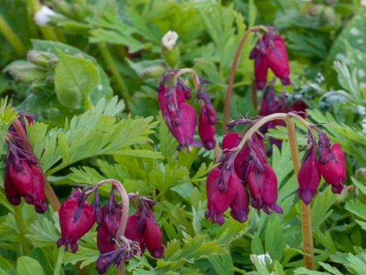 Дицентра красивая "Bacchanal"- многолетнее растение с привлекательной и оригинальной формой цветка. Идеально подходит для смешанных клумб, рокариев, альпийских горок, великолепно сочетается с астильбами, хостами и другими теневыносливыми многолетниками.