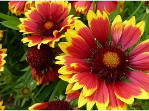 Компактный многолетний куст. Цветочки желтые с красным центром, очень яркие. Цветение обильное. Чтобы продлить цветение гайлардии, и без того длящееся более двух месяцев, нужно вовремя удалять увядшие соцветия. Листья ланцетовидные, опушенные, зеленого цвета. Цветет в июне-августе до 60 дней. Использование: в группах, рабатках, миксбордерах, для срезки, в вазоны и контейнеры.