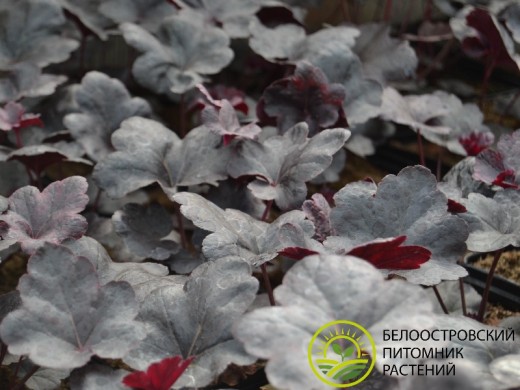 Один из темных, но очень ярких сортов. Листва насыщенного бордово-красного цвета, местами доходящий до черного. Период цветения: конец весны или начало лета. Цветки мелкие, колокольчатые, собраны в соцветия на длинных цветоносах, могут быть белыми или розовыми. Максимальная высота растения может достигать 30–45 сантиметров.