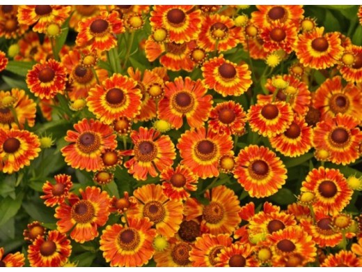 Компактный сорт. Цветки многочисленные, ромашковидные, яркие, красно-оранжевые с золотистым ореолом и коричневым центральным диском. Цветоносы прочные, хорошо разветвлённые. Цветение в августе-октябре. Листья копьевидные, зубчатые, тёмно-зелёные. Высота 40-50 см и ширина 50-60 см. Прекрасное растение для срезки. В сухую и жаркую погоду нуждаются в обильном поливе. Хорошо отзываются на органические и минеральные подкормки (2-3 раза за лето). Растения зимостойкие, но если их не делить дольше 3-4 лет, то розетки могут подмерзать. Использование: миксбордеры, рабатки, композиции, на срезку.