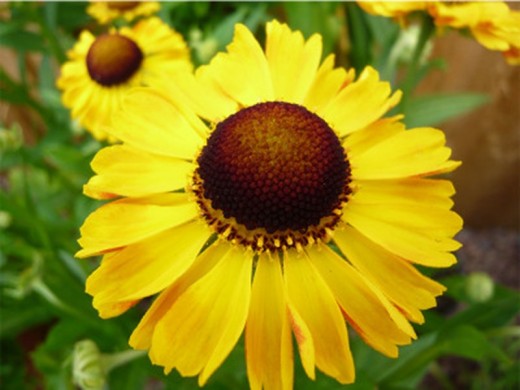 Листья ярко-зелёные, ланцетные, с мелкозубчатым краем, образуют плотный куст с прямостоячими стеблями. С июля по сентябрь растение украшают многочисленные цветки диаметром 4–6 см, золотисто-жёлтого цвета с выпуклым тёмно-коричневым центром, создающим эффектный контраст.