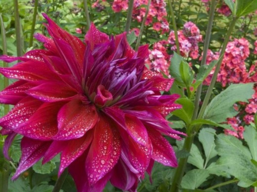 Куст мощный, пышный, стебли полые высотой до 110 см. Цветок малиново-красный с высветленными кончиками, диаметром 22 см. Широкие, плоские язычковые цветки, слегка закручены и заостренные на кончиках. Листья перистые, тёмно-зеленые, многочисленные. Цветет обильно и продолжительно с июля по сентябрь. Предпочитает солнечные, защищенные от ветра места, плодородные хорошо дренированные почвы. Размер: I