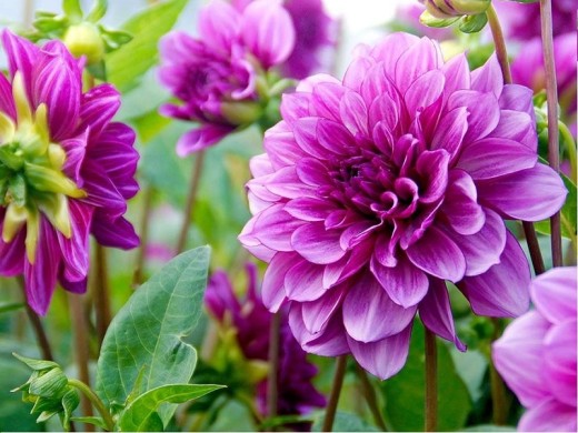 Однолетнее клубневое растение группы Декоративных георгин. Цветок махровый, ярко-розовый с лиловым меланжем, вокруг лепестков тонкий лиловый кант, диаметром 15 см. Плоские язычковые цветки заостренные на кончиках и слегка закрученные и отогнутые к стеблю. Листья перистые, тёмно-зеленые, многочисленные. Куст мощный, пышный, стебли полые высотой до 90 см.