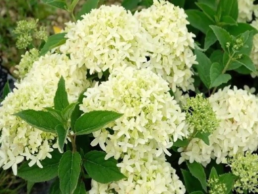 Цветение обильное, с июля по конец сентября. Цветки собраны в крупные, до 30 см соцветия конической формы. В начале цветения они белые, с лаймовым оттенком, затем становятся розовыми и к концу сезона приобретают красный и порой даже бордовый цвет.