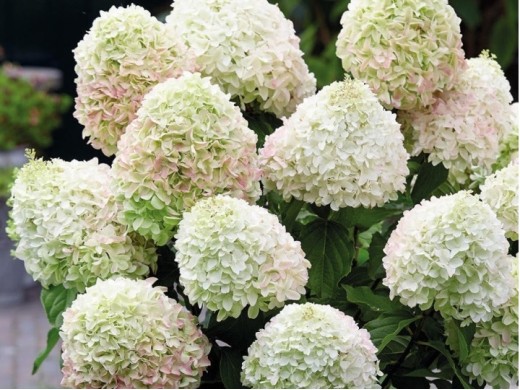 Гортензия поражает необыкновенной красотой своих цветов, способных менять оттенок по мере цветения, от белоснежного до темно-розового цвета. Соцветия очень плотные, имеют форму пирамиды длиной до 35см, с округлой вершиной.