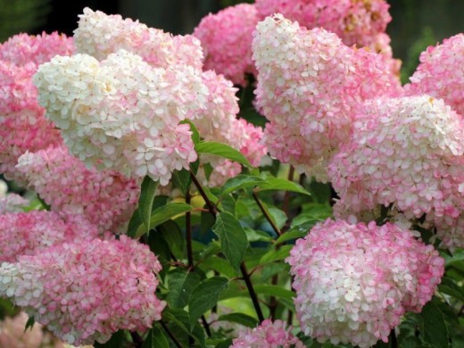 Соцветия плотные, пышные, длиной до 30 см. При распускании цветы ванильно-белые, затем постепенно, снизу вверх, окрашиваются в сочно-розовый цвет, а осенью становятся ярко-малиновыми..