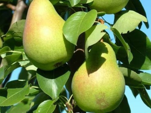 Крона раскидистая, широкопирамидальная, редкая. Плоды среднего размера, 130-150 г, неправильно округло-ромбической формы, ребристые. Основная окраска зеленовато-желтая с бурыми крупными подкожными точками. Покровная окраска карминовая, слабая. Воронка узкая, мелкая. Блюдце широкое, мелкое, ребристое. Плодоножка длинная, толстая, прямая. Мякоть плотная, маслянистая, сочная, кисловато-сладкая с мускатным привкусом. Сорт самоплодный. Период потребления осенний.