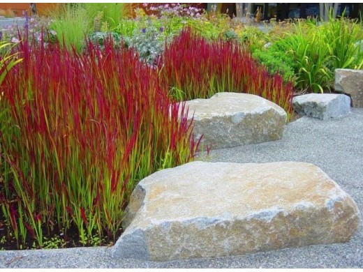 Эффектное многолетнее, исключительно декоративное растение. Стебель прямой, листья узкие и жесткие, с заостренными концами. Имеют специфическую насыщенную красную окраску с четкими линиями. Хорошо разрастается. В период цветения, который наблюдается в середине весны, выбрасывает колоски длиной до 15 см. Пушистые колосья серебристого цвета создают интересный контраст с листьями. Использование: альпинарии, миксбордеры, композиции, рокарии, бордюры.