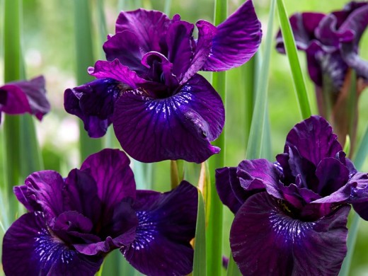 Один из самых темных сортов. Высота растения достигает 60-80 см. Ширина 40см. Цветки диаметром 14 см, темно фиолетового цвета с лучистом рисунком в центре. Аромат лёгкий, сладкий. Цветение в июне.