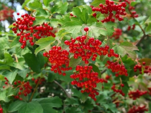 Калина "Зарница" - популярный урожайный сорт для промышленной переработки ягод. Благодаря декоративному внешнему виду применяется для оформления аллей, придомовых территорий.