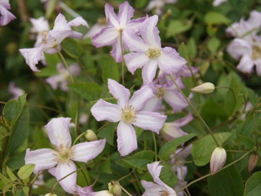 Обильно цветущий сорт из группы среднецветковых клематисов. Цветы колокольчиковидные, розово-кремовые, с лиловой каёмкой и зелёными тычинками. Цветки размером до 5 см. Цветение обильно с середины июня и до сентября. Высота растения достигает 3м . Предпочитает солнечные места, но корни и основание ствола должны быть затенены. Лучше всего растёт в плодородной суглинистой или супесчаной почве. Относится к 3-й группе обрезки: её производят поздней осенью или ранней весной, оставляя 2-3 междоузлия от земли (около 15 – 25 см). (P.H.)Характеристики: