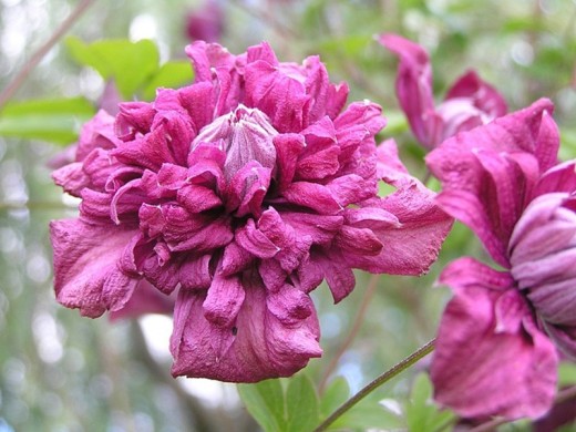 Цветки махровые, 6-9 см в диаметре, красно-пурпурного цвета.