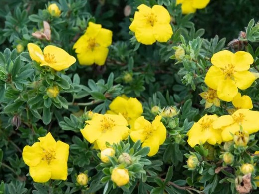 Лапчатка кустарниковая "Gold Star" - невысокий, изящный, листопадный кустарник, с золотистыми крупными цветками. Великолепно выглядит в одиночных и групповых посадках, в плотных цветущих изгородях, бордюрах и каменистых садах, подходит для оформления композиций с травянистыми растениями.