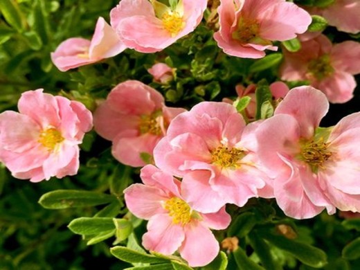 Лапчатка кустарниковая "Pink Paradise" — компактный, изящный кустарник с обильным цветением, украсит любой сад нежно-розовыми цветками. Идеально подходит для групповых и смешанных посадок, бордюров, каменистых садов и композиций с хвойными или травянистыми растениями.