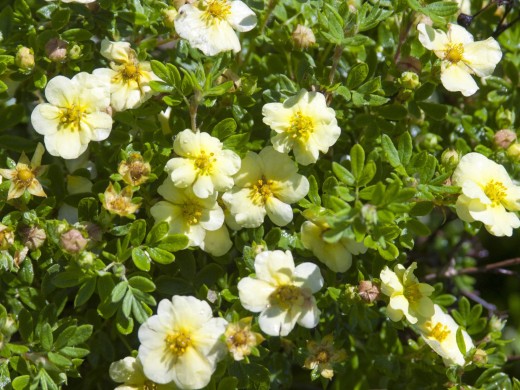 Лапчатка кустарниковая "Tilford Cream" невысокий, изящный, кустарник с крупными цветками кремовых оттенков. Великолепно выглядит в одиночных и групповых посадках, в цветущих бордюрах и каменистых садах, подходит для оформления композиций с травянистыми растениями. Высота куста до 0,5м, диаметр кроны до 1 м. Крона широкая, подушковидная, густая. Светло-зеленые листья осенью желтеют. Годовой прирост в высоту и ширину 10 см.