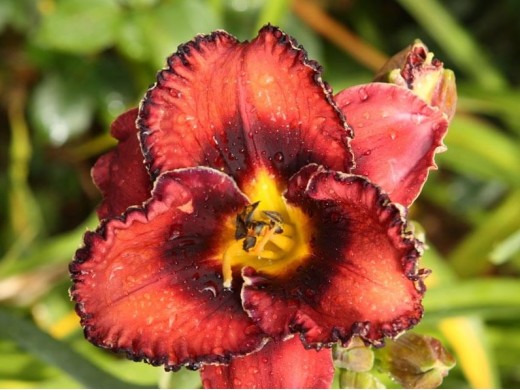 Лилейники идеальны для использования в различных ландшафтных композициях. Листья узкие, создают красивый фон для эффектных цветков. Прекрасно смотрится как в одиночных посадках, так и в групповых композициях, добавляя яркий акцент в любой сад. Внутренние лепестки широкие бархатистые винно-красного цвета с темной почти черной глазной зоной и ярко желтым горлом. Высота – 60 см. Цветение повторное, июль-август. Для достижения наилучших результатов рекомендуется высаживать лилейник на солнечных участках с плодородной, хорошо дренированной почвой. Регулярный полив в период активного роста и цветения способствует обильному формированию бутонов и продолжительному цветению. Лилейники обладают высокой морозостойкостью, что позволяет выращивать их в различных климатических условиях. (У.Д)