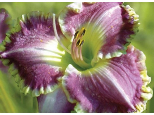 Лилейник обладатель красивых соцветий сиреневого оттенка с гофрированной каймой желтого цвета. Диаметр каждого цветка 14 см. Цветение долгое, продолжительное. Кусты лилейника пышные, объёмные в высоту достигают 65 см. Цветение раннее, наступает в июне.