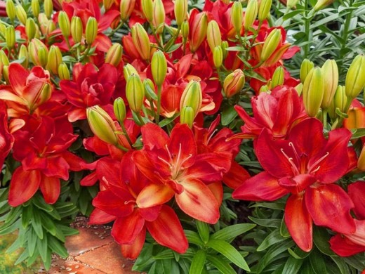 Компактный сорт азиатской лилии с яркими красными цветами. Подходит для выращивания в горшках. Высота растения 40 см, цветки среднего размера, насыщенного красного цвета, не имеющие пыльцу, аромат легкий практически незаметный что идеально подойдет для тех кто не любил сильных ароматов.