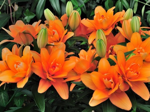 Ярко - оранжевый гибрид лилии из серии Тайни. Высота взрослого растения 45см. Ароматный цветок - редкое качество для азиатских гибридов лилий. Форма соцветия: цветы чашевидные с широкими лепестками, направленные вверх. Цветы диаметром 15см, махровые стерильные, лишены пыльников, тычинки модифицированы в дополнительные лепестки. Идеально подходит для выращивания в контейнерах, горшках, уличных вазонах.