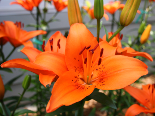 Сорт гибридной лилии. Достигает высоту 100-110 см. Стебли крепкие, прямые, густооблиственные, зелёного цвета. Цветки большие, диаметром 17см, ярко-оранжевые, с тёмно-оранжевым крапом в центре, аромат отсутствует. Цветёт в июле.