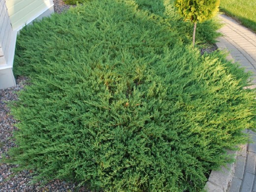 Стелющийся кустарник высотой до 0,4м, и шириной до 2,5м. Отличается подушковидной кроной с приподнимающимися побегами и сизо-зеленой хвоей, приобретающей фиолетовую окраску зимой. Годовой прирост в высоту 5-6 см, в ширину 8-10 см. Светолюбив, но выносит небольшое затенение. К почвам нетребователен, но не выносит избыточно-увлажненных. Морозоустойчив. Первые 2-3 года после посадки желательно укрыть от весеннего солнца. Переносит городские условия.