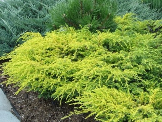 Можжевельник обыкновенный Депресса Ауреа (Juniperus communis Depressa Aurea) - низкий хвойный кустарник высотой до 0,5м и диаметром кроны до 2,0м. Растет относительно быстро, около 15 см в год. Ветви приподняты, кончики свисают вниз. Хвоя короткая, золотисто-желтая, особенно яркая на молодых побегах. К зиме хвоя буреет. Лучше всего растет на солнечных местах, на умеренно влажных, дренированных, легких песчаных почвах со слабокислой реакцией.