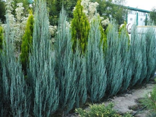 Вертикальный кустарник. Высота до 5 м, ширина до 1 м. Крона очень узкая, пирамидальная, плотная. Хвоя с голубым оттенком. Годовой прирост в высоту 15-20 см, в ширину 3-5 см. Долговечен. Светолюбив. К почве нетребователен, но не любит застойной влаги. Хорошо растет на легких суглинках. Морозоустойчив, но иногда в суровые морозы (ниже -30 С) может подмерзать. Переносит городские условия.