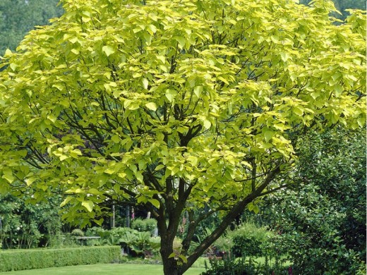 Дерево высотой до 5 метров, с округлой кроной. Листва весной и летом золотисто-зеленая, осенью золотисто- желтая. Годовой прирост около 15-20 см.