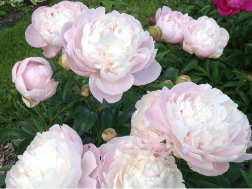 Махровый розовидный. Цветок диаметром 20 см, белый, чуть кремово-розоватый, в короне – кремовый, центр более насыщенный. Аромат тонкий, нежный. Куст высотой 80 см, слегка раскидистый. Стебли прочные. Листья тёмно-зелёные. Цветение очень обильное в средне-поздние сроки. Один из лучших срезочных сортов.