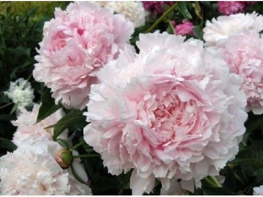 Махровый розовидный. Цветок крупный, но изящный, диаметром 20-25 см, нежно-розовый, пушистый. Аромат средний. Высота 80 см. Стебли сильные с умеренным ветвлением. Листья полуглянцевые, от средне- до светло-зелёных. Среднего срока цветения. Пригоден для срезки.