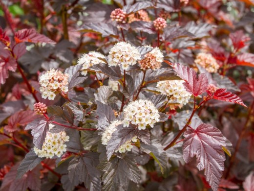 Пузыреплодник калинолистный "Red Baron" компактный изящный кустарник с густой полушаровидной кроной, идеален для создания живых стриженных и свободно растущих изгородей, хорош в групповых и одиночных посадках.