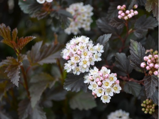 Пузыреплодник калинолистный "Summer Wine" декоративный кустарник с поникающими побегами, привлекателен благодаря своей красивой винно-красной листве с металлическим блеском и бело-розовым цветкам. Великолепно смотрится в составе любой ландшафтной композиции, солитером или в живой изгороди.