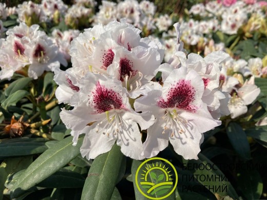 Рододендрон гибридный "Calsap" поразительной красоты вечнозеленый кустарник с бело-сиреневыми цветками. Украсит собой любой ландшафтный дизайн, прекрасный компаньон для хвойных растений, можно использовать в групповых и смешанных посадках. Взрослый куст имеет округлую форму, к 10-ти годам вырастает до 1,4 м высотой и шириной. Листья плотные, темно-зеленой окраски, овально- вытянутой формы. Растет медленно, годовой прирост около 5 см. Цветение начинается в мае и продолжается до 3-х недель. Бутоны светло-лиловые. Цветки окрашены в белый цвет с сиреневым оттенком. На верхнем лепестке эффектные фиолетово-ежевичные пятнышки. Цветки диаметром 6-6,5 см, собраны по 10-15 штук в густые шаровидные соцветия до12 см в диаметре. Место посадки рекомендуется выбирать затененное, защищенное от ветров. Почва должна быть плодородная, хорошо увлажненная, дренированная, кислая. Не выносит застойного увлажнения и прямого солнца. Обладает высокой морозостойкостью и устойчив к болезням и вредителям. Молодой рододендрон рекомендуется укрывать на зиму в первые годы после высадки. (АБ)