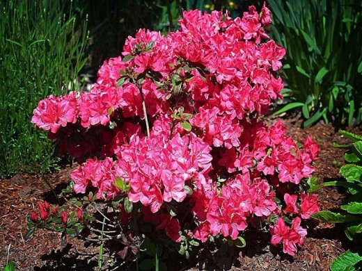 Рододендрон тупой "Anouk" - кустарник с яркими цветками, отличается скромными габаритами, что позволяет использовать его в контейнерных посадках для оформления открытых террас и патио, а также в рокариях и альпийских горках.
