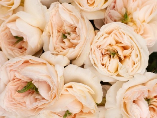 Цветки среднего размера, до 8 см, густомахровые (количество лепестков может достигать 140 шт.)