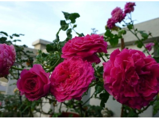 Высота розы около 130 см. Ширина куста 75 см.Листья зеленые, глянцевые.
