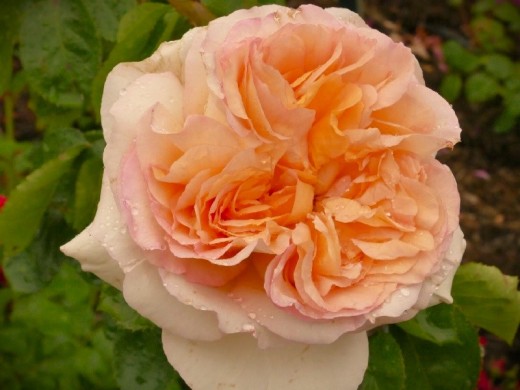 "Alphonse Daudet" результат французской селекции, который имеет нежные цветки оранжевой палитры с абрикосовым оттенком.