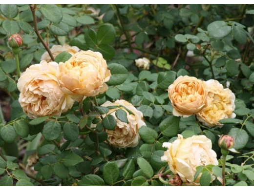 Кусты считаются довольно компактными для английских роз. Высота достигает 1.2 м в высоту и 0.9 в ширину.