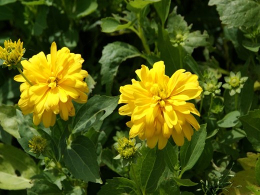 Рудбекия рассеченная "Goldquelle" цветет с июля по сентябрь, наполняя сад теплом и яркостью в течение всего сезона.