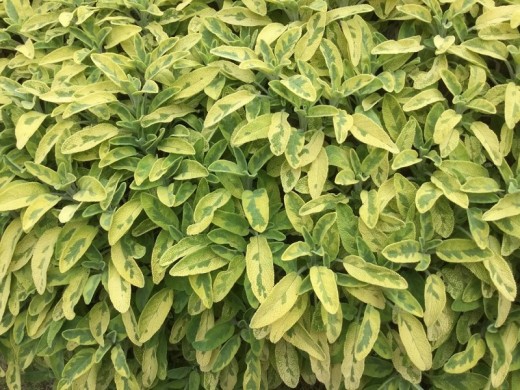 Шалфей лекарственный "Icterina" Лекарственное. Ароматическое растение. Морщинистые желто-зелёные листья (до 12 см в длину) обладают сильным ароматом и часто используются в кулинарии свежими или сушёными в качестве приправы . В ландшафте используют в миксбордерах, клумбах и декоративных композициях. Растения хорошо сочетается с пионами, розами, ирисами, декоративными травами, и еще с много разных многолетних растениях.