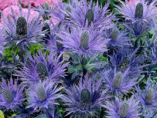 Синеголовник "Blue Star" цветет в средние сроки — с июля по август, радуя цветением до 6–8 недель и сохраняя декоративность даже после увядания.